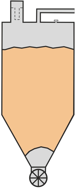 Unter Brückenbildung versteht man die Ausbildung eines stabilen Materialgewölbes im Bereich des Siloauslaufs. Dieses Gewölbe trägt das darüberliegende Schüttgut selbstständig und verhindert, dass weiteres Material nachrutscht.
