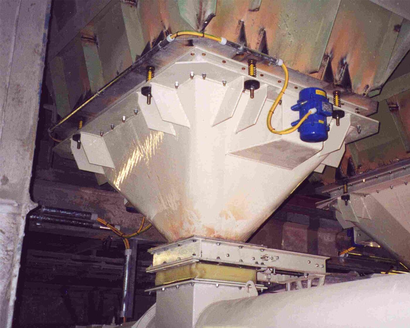 Der Deflektor überträgt die Schwingungen in die Materialsäule und das so aufgelockerte Schüttgut fließt durch den Auslauftrichter ab.